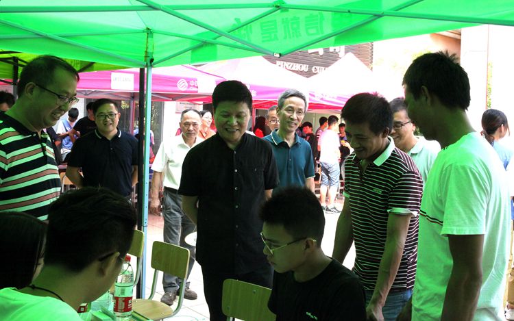 校党委书记周家健、校长沈建民与班子成员在报到现场看望新生