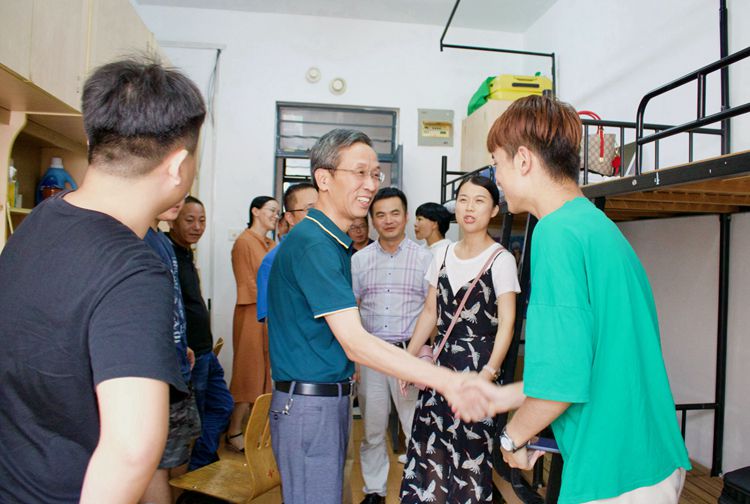 校长沈建民来到学生宿舍走访看望新生