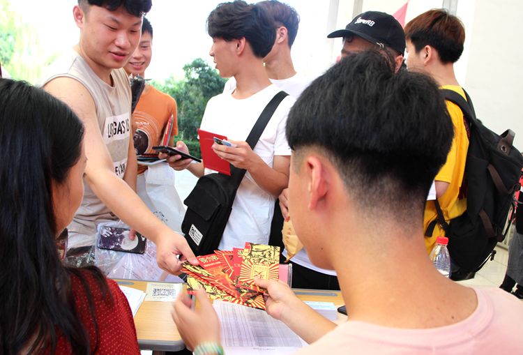 为了让新生入学第一天留下特别的记忆和美好的瞬间,建筑工程学院、旅游与公共管理学院分别设计了各具特色的“朋友圈”迎新;机电与汽车工程学院专门安排了学生党员为新生佩戴校徽;物流与信息工程学院为新生派发了别样“红包”;商贸与经济管理学院摆下“领奖台”;艺术设计学院教师现场为新生绘制扇画作品。