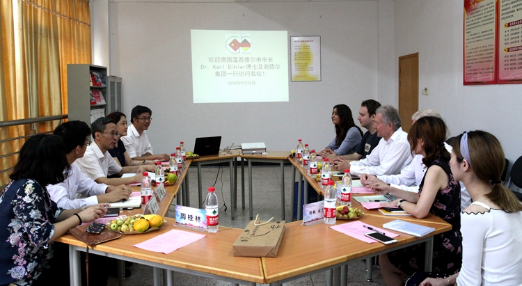 9月20日上午,德国温西德尔市市长Karl Döhler博士及德国百年国际化家族企业谢德尔集团一行7人来校访问交流。校长沈建民,外事与港澳台办公室、教务处等部门负责人、机电与汽车工程学院党政负责人参加座谈交流。