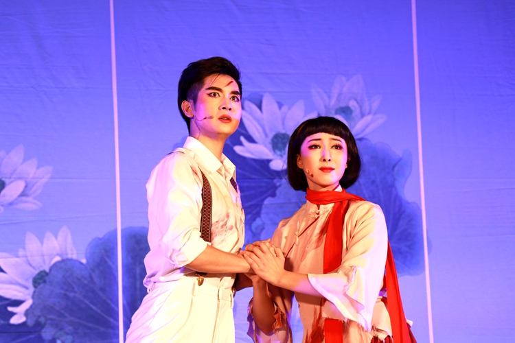 选自鲁迅小说《祝福》的《祥林嫂•洞房》一折中,祥林嫂从被骗后坚决不从、以死抗争,到最后接受了善良老实的贺老六,两名演员将祥林嫂与贺老六的情感变化表现得层次分明,赢得了在场师生们的阵阵掌声。
