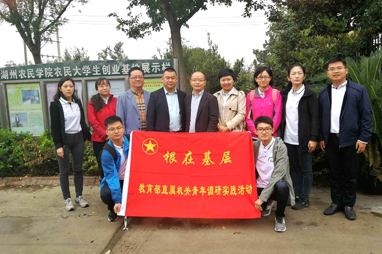 10月16日,教育部直属机关青年干部调研组一行10人在国家开放大学新闻中心副主任何菁带领下来校调研开放教育“一村一名大学生培养计划”工作,浙江电大招生与合作处处长李彪,学校副校长、湖州农民学院副院长叶主陪同调研。