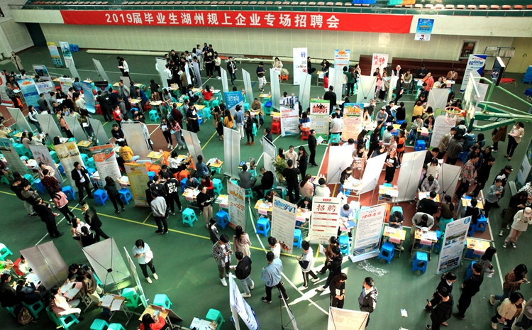 为进一步贯彻落实湖州市政府关于“大学生就业创业新十条”等文件精神,推进我校2019届毕业生留湖实习实训、就业创业工作,日前,学校在艺体馆举办2019届毕业生湖州规上企业专场招聘会。湖州市三县两区115家规上企业到场招揽人才,提供岗位3300余个,学校3000多名2019届毕业生进场咨询求职。