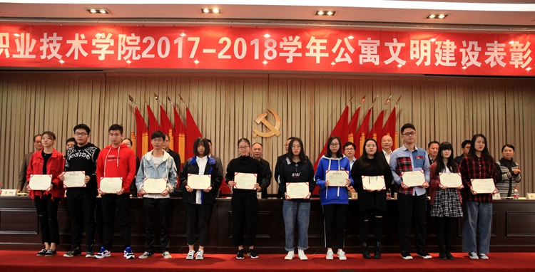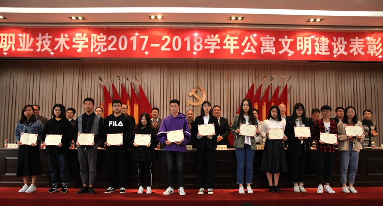 党委学工部负责人宣读了2017-2018学年星级寝室、特色寝室、优秀寝室长表彰决定。大会对112间四星、五星级寝室,23个特色寝室集体,112名优秀寝室长分别进行了表彰。软件1702班俞盛辉、国贸1605班冯志刚和文秘1601班冯程瑶分别作为星级寝室代表、特色寝室代表和优秀寝室长代表做了大会发言,向全体新生寝室长分享了在文明寝室创建过程中的心得体会。