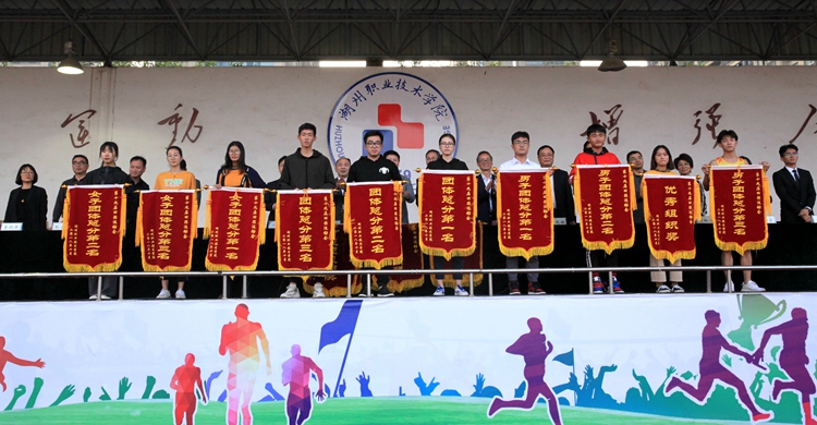 闭幕式上,主席台领导为获得学生团体奖、体育道德风尚奖、优秀组织奖、教职工集体运动项目团体奖的代表队和获得破纪录奖的运动员颁奖。