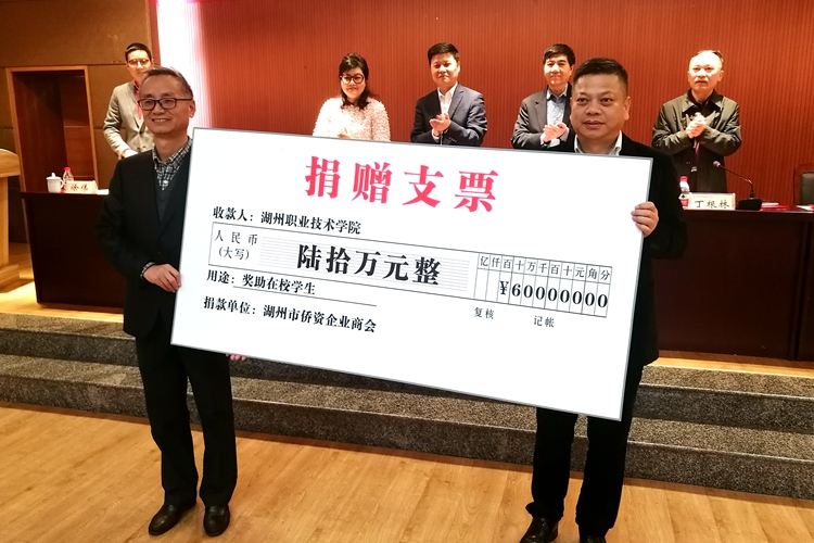 会上,徐伟与丁继安分别代表商会和学校双方签订了捐赠协议书,市侨资企业商会捐赠60万元在我校设立“湖州市侨资企业商会奖学金”。