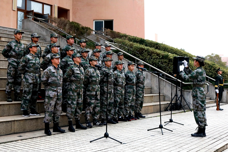 22名校戎耀卫队队员合唱《当那一天来临》,传递当代革命军人捍卫祖国领土完整和统一,维护世界和平,勇敢战斗,舍我其谁,不怕牺牲的坚定信念。仪式在雄壮的军歌声中结束。