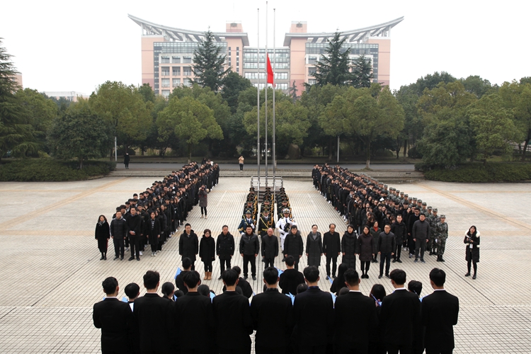 12月13日上午,学校举行南京大屠杀死难者国家公祭日纪念仪式。党委副书记丁根林,学生处、团委负责人,各二级学院党总支副书记、辅导员及学生代表共计300余人参加仪式。