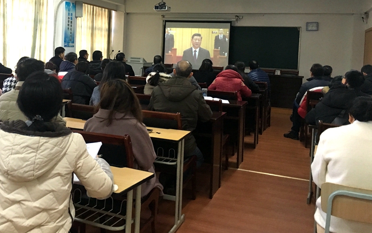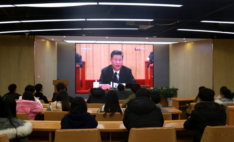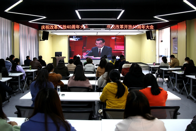 12月18日上午10时,庆祝改革开放40周年大会在人民大会堂举行。中共中央总书记、国家主席、中央军委主席习近平同志发表重要讲话。学校各党总支、直属党支部组织师生员工第一时间收看了大会直播,校党委书记周家健等校领导班子成员参加集体收看。