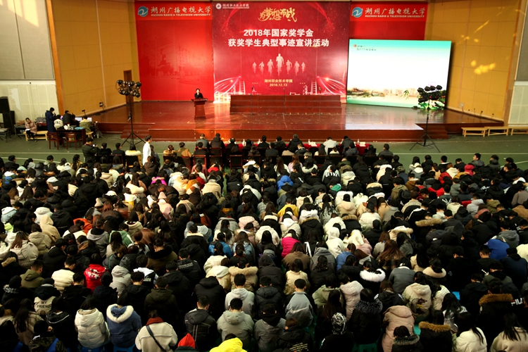 为培育和宣传我校学生中的先进典型,用典型事迹感召和激励全体学生奋发向上,引导学生树立正确的价值目标、学业目标、能力目标和生活目标,展示新时代湖职学子的精神面貌,促进优良学风建设,12月13日下午,“为梦想而战”学校2018年国家奖学金获奖学生典型事迹宣讲活动在艺体馆举行。党委学工部、团委相关负责人、各二级学院党总支副书记、学工办主任、辅导员参加宣讲活动,700余名2017级、2018级学生代表聆听了宣讲报告。