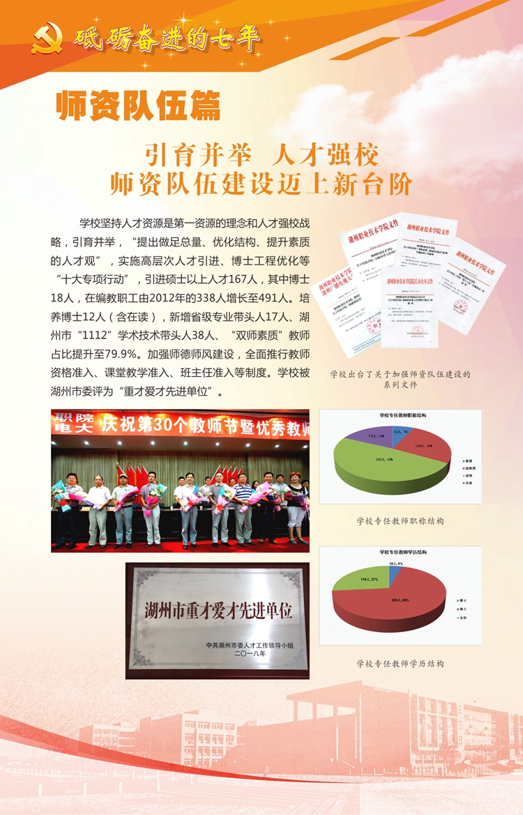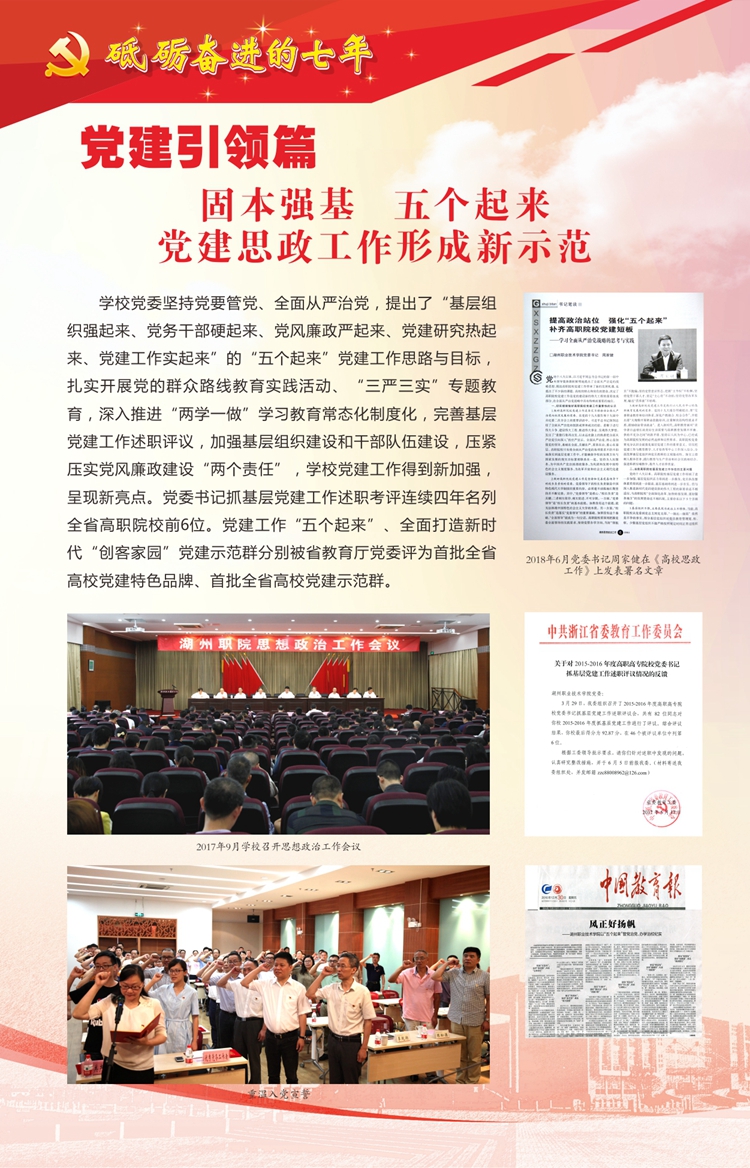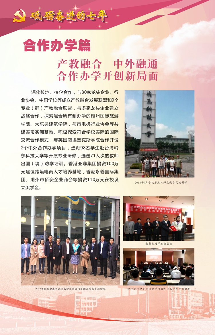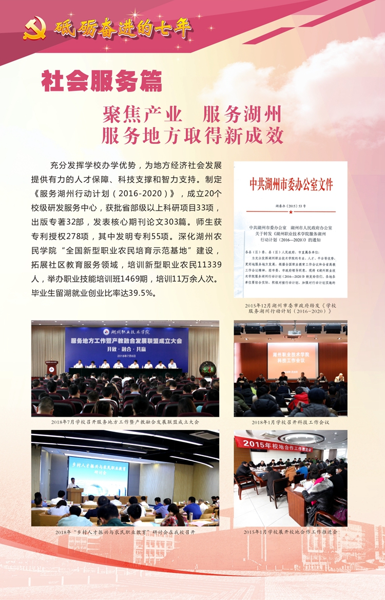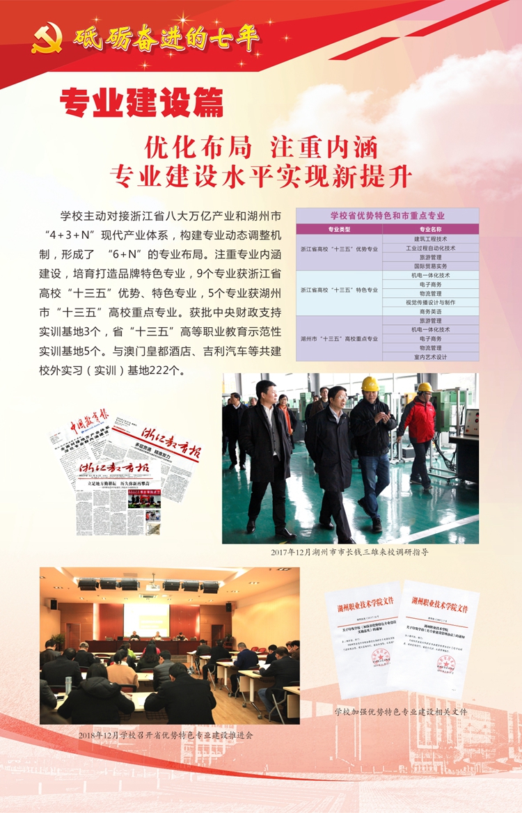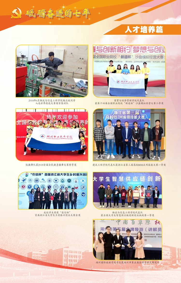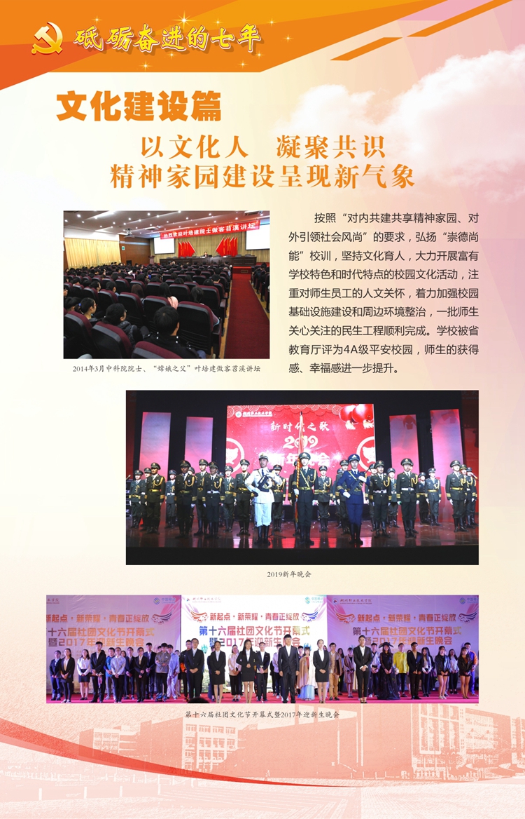 编者按:为庆祝学校第二次党代会胜利召开,党委宣传部特举办“砥砺奋进的七年——喜迎学校第二次党代会办学成就展”,从总览全局、党建引领、专业建设、人才培养、师资队伍、文化建设、社会服务、合作办学等8个篇章与全校师生共同回顾七年来学校事业改革发展的变化和成就,共同展望新时代学校发展的美好未来。我们相信,只要全体湖职院师生不忘初心,砥砺前行,奋力赶超,高质量建设区域性高职名校的“湖职梦”一定能实现!