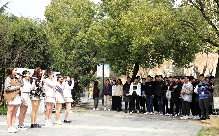 “五星红旗迎风飘扬,胜利歌声多么响亮……”3月7日中午,校庆碑记小型广场上,经典的旋律回荡在空中,“芳华心向党 歌唱新时代”主题文艺快闪活动激情上演,来自各个学院的女生代表用热情激昂的歌声抒发心中的家国情怀,吸引过往的学生情不自禁一同歌唱祖国、点赞新时代。