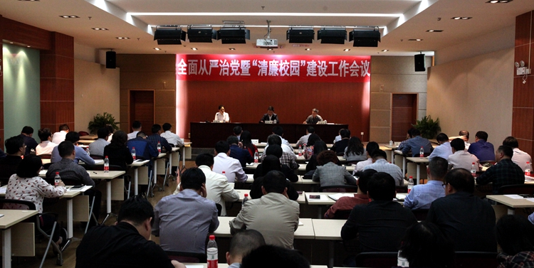 4月27日,学校全面从严治党暨“清廉校园”建设工作会议在教师发展中心召开。会议学习传达十九届中央纪委二次全会和十四届省纪委二次全会以及全省教育系统全面从严治党工作暨“清廉教育”建设动员部署会精神,回顾总结学校2017年全面从严治党工作,研究部署2018年全面从严治党工作和“清廉校园”建设工作任务。校党委书记周家健作《以政治建设为统领 切实增强“四个意识” 着力推进全面从严治党和“清廉校园”建设》主题讲话。党委副书记、校长沈建民及其他班子成员,全体中层干部、民主党派负责人、校纪委委员、研发中心负责人、教工党支部书记、专兼职纪检委员和特邀监督员等120余人参加了会议。会议由沈建民主持。