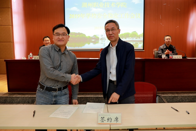 会上,沈建民与党委宣传部、商贸与经济管理学院负责人现场签订了《安全目标管理责任书》。实训管理处、机电与汽车工程学院、学生处负责人作了交流发言。