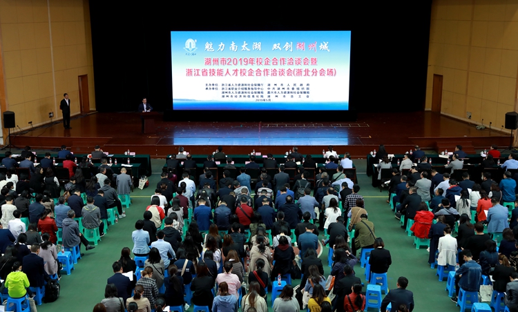 5月8日上午,由湖州市人民政府、浙江省人力资源和社会保障厅主办的“魅力南太湖 双创湖州城”——湖州市2019年校企合作洽谈会暨浙江省技能人才校企合作洽谈会(浙北分会场)启动仪式在我校举行。湖州市副市长项乐民、吉林省人民政府驻上海办事处副主任赵金敏出席会议并讲话,我校校长沈建民、湖州市人民政府副秘书长丁泉观、市人力资源和社会保障局局长王树等领导参加启动仪式。