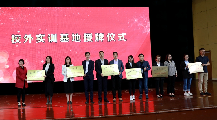 会上,6家省外院校向6家湖州企业授予“校外实训基地”铜牌。