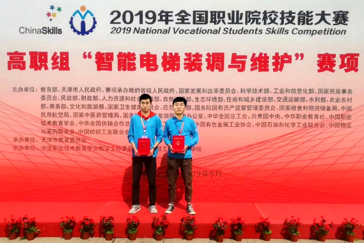 5月9日,由教育部主办的2019年全国职业院校技能大赛高职组“智能电梯装调与维护”赛项在天津轻工职业技术学院落下帷幕。经过全国90所高校代表队的激烈角逐,我校机电与汽车工程学院王秦越、问朋朋两位老师指导的张春孩、蔡青鹏组成的代表队荣获全国三等奖。