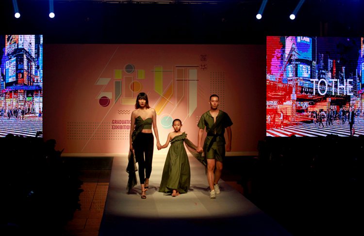 服装展的现场灯光迷离而绚丽,随着音乐响起,服装与服饰设计专业68名毕业生设计的204套极具中国风和时代感、充满艺术与典雅风格的服装在50余位专业模特和童模的演绎下,为现场观众呈现了一场传统文化与时尚创意的视觉盛宴。本次服装秀的服装作品共分鸿蒙·黑白、中庸·色彩、相生·传统、无相·结构、涵化·整体五大主题。准设计师们运用多样化的裁剪和大胆的色彩对比,将传统文化的意境和时尚创意的表达进行融合。据悉,本次毕业秀展示的服装毕业设计作品,从设计主题方案制定,到服装制作与改造,到饰品搭配,到走秀形式与舞台效果策划等,每一环节均由学生们独立完成。