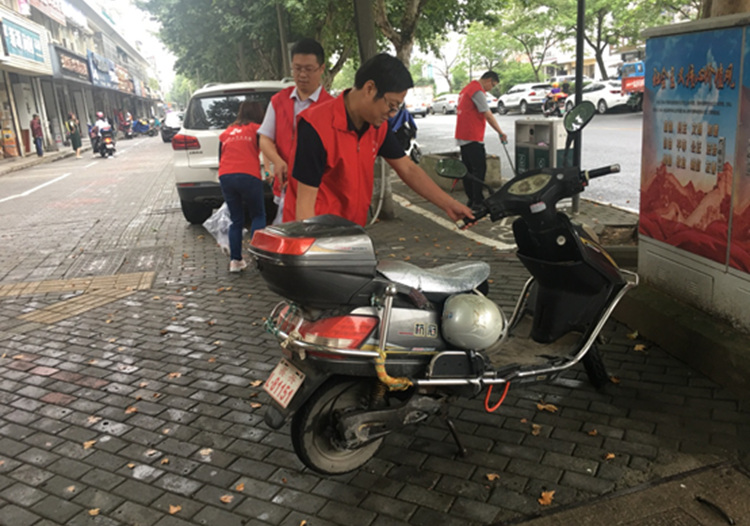 6月22日,建筑工程学院党总支组织党员志愿者开展了以“共享单车,文明同行”为主题的党日活动,助力湖州美丽和谐城市建设。