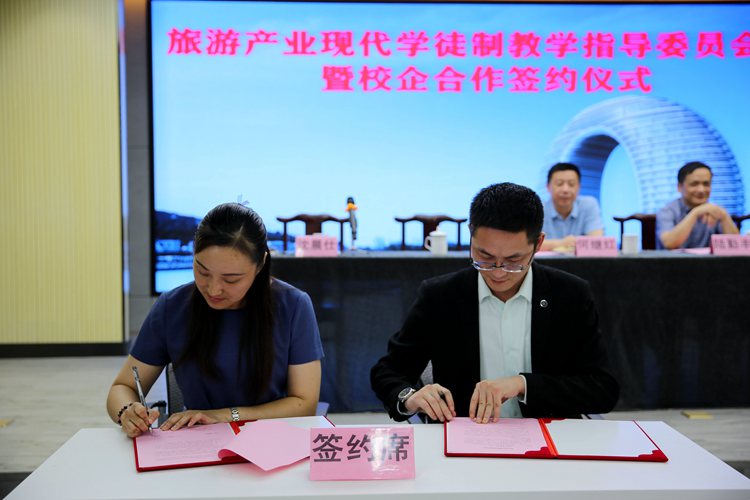 7月2日上午,湖州国际旅游学院召开旅游产业现代学徒制教学指导委员会议暨校企合作签约仪式。市文广旅游局党委委员、副局长何继红,市人社局组织人事处处长辅利刚,校党委委员、副校长陆勤丰出席会议,会议由湖州国际旅游学院执行院长沈晨仕主持。