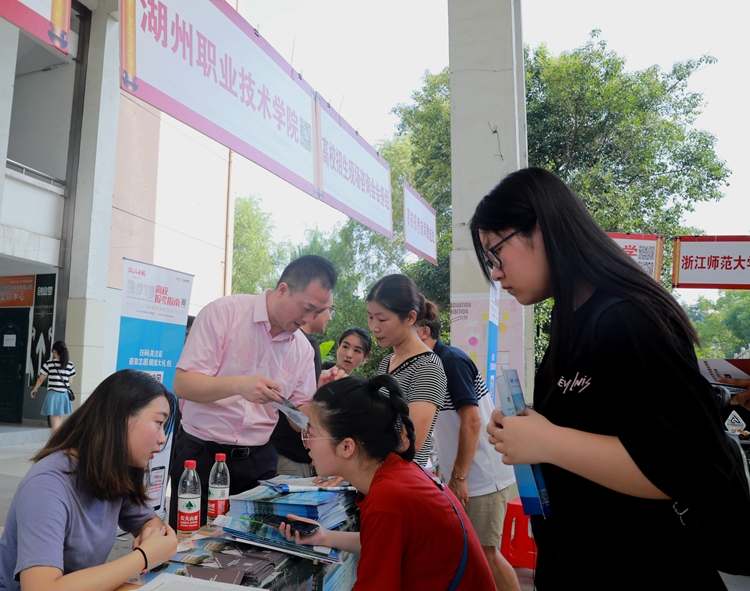 7月21日,由浙江省普通高校招生研究会高职协会、湖州市教育考试中心、浙江日报联合举办的2019年浙江省高校招生公益巡回咨询会(湖州站)在我校圆顶广场举行。