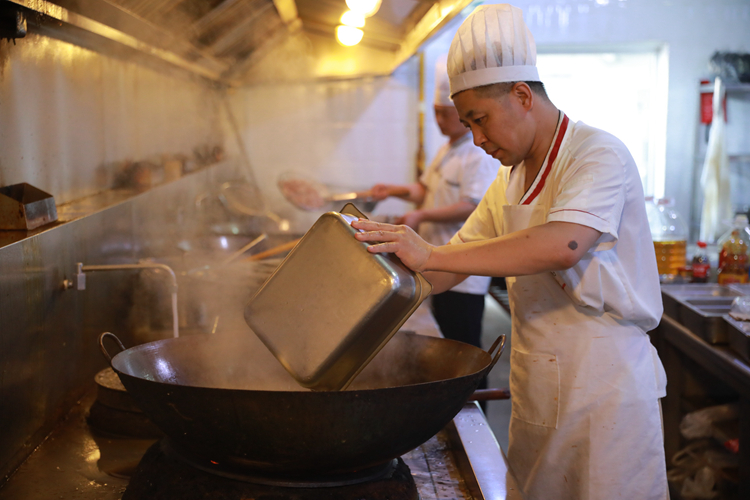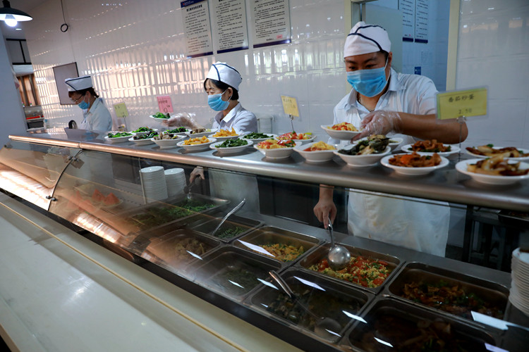 学校的一号食堂暑期正常营业。作为暑期唯一开放的餐厅,不仅承担着留校师生的一日三餐,还要承接学校各类培训班的用餐服务。为保证暑期学校教育教学工作顺利开展,员工们不仅精心设计了夏季菜品搭配,还重点抓好了暑期餐饮的安全卫生。