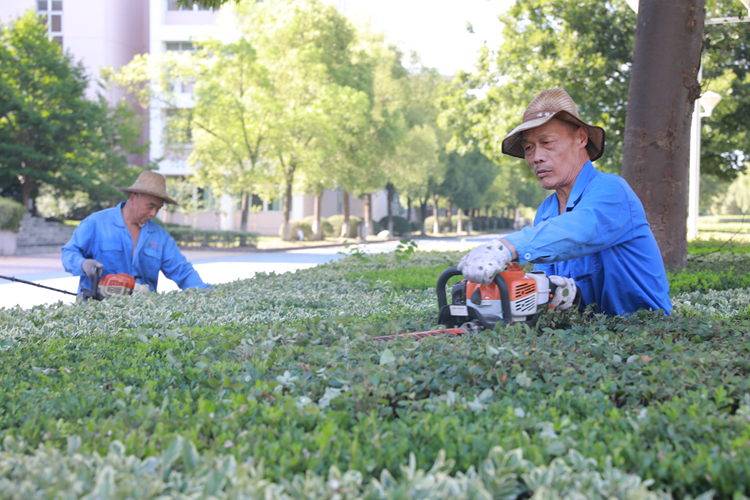 绿化养护与基础保洁、全校电路的检修维护在暑期是一项常规工作。为保持校园绿化环境,养护工人们定期对全校植物进行集中浇灌和全面养护,并针对性地开展了杂草修剪、杀菌治虫等工作。维修组的员工也对全校的所有电路进行了检修,并随时准备及时解决各类维修任务,确保了暑期留校师生能有一个舒适整洁、安全有序的校园环境,也为新学年的开学做好了准备工作。