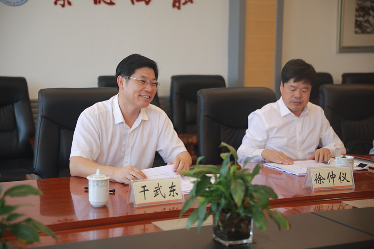 周家健向干武东汇报了我校近年来改革发展情况及学校党群服务中心筹建情况。近年来,在省教育厅和市委市政府的关心支持下,学校围绕“全面深化改革、加快转型发展、更好服务湖州”工作主线,学校预算总收入实现翻番,硕士以上高学历人才队伍实现翻番,毕业生“留湖”就业创业总量实现翻番,事业得到了高质量发展。