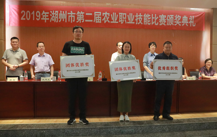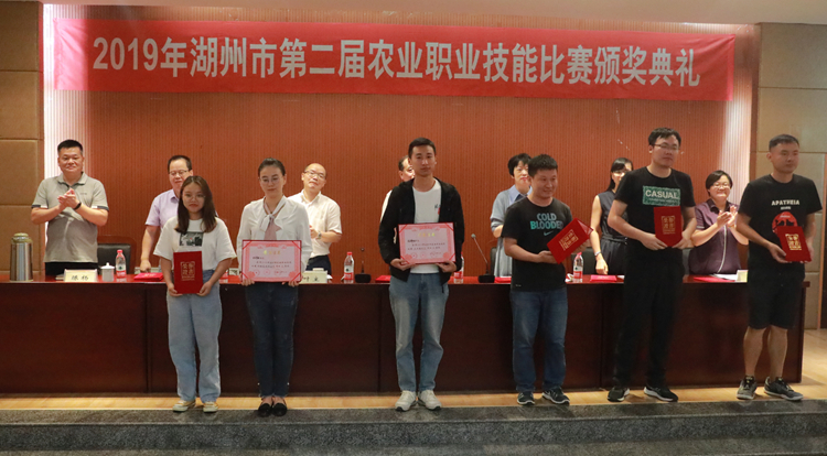 9月3日,由市农业农村局、市人力社保局、市总工会和我校共同主办的湖州市第二届农业职业技能比赛在我校举行。省农广校副校长张新,市农业农村局党委副书记、副局长吴云妹,我校副校长叶主及有关领导为获奖选手颁奖。