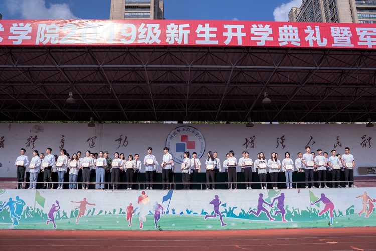 校党委书记周家健,校长沈建民等主席台领导为12名新生“报考全日制本科学习券”获得者和受表彰学生代表颁奖。主席台领导还为新生代表佩戴了校徽,熠熠闪光的校徽既是湖职院人身份的象征,更是传承“崇德尚能”校训精神的信物,佩戴上校徽,自此便与湖州职院血脉融通、使命共担。