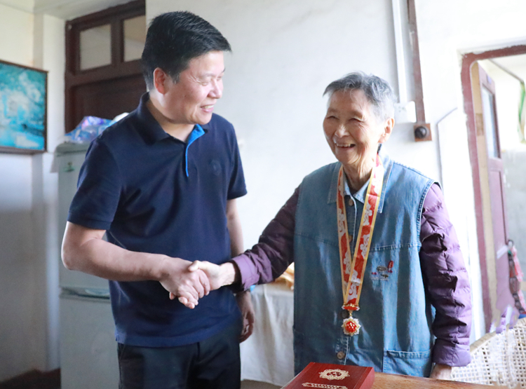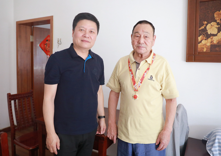 在中华人民共和国成立70周年前夕,中共中央、国务院、中央军委决定,为新中国成立前参加革命工作的、健在的老战士老同志以及新中国成立后获得国家级表彰奖励及以上荣誉并健在的人员颁发“庆祝中华人民共和国成立70周年”纪念章。9月25日上午,党委书记周家健分别走访慰问了我校张如菊、楼良炳两位老同志,为他们佩戴上由中共中央、国务院、中央军委颁发的“庆祝中华人民共和国成立70周年”纪念章,向他们致以崇高敬意和亲切问候。党委组织部负责人陪同走访慰问。