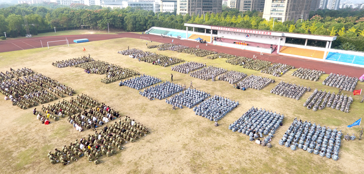 9月30日上午, 2019级新生军训会操暨表彰大会在学校田径场举行。校党委副书记金毅伟,承训部队领导及教官,学工部(人武部)、各二级学院相关负责人、辅导员和全体参训新生出席大会。