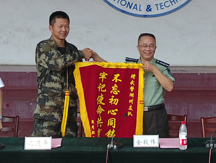 金毅伟充分肯定了2019级新生军训成效,对承训部队的领导、承训教官和学校相关部门的辛勤付出表示感谢。他勉励同学们能把在军训期间养成的良好品德和作风带到今后的学习中生活中去,志存高远,心系国家命运,大练技能,用奋斗的青春为实现中华民族伟大复兴的中国梦、为学校早日高质量建成区域性高职名校添砖加瓦。会上,金毅伟向承训部队赠送了锦旗。