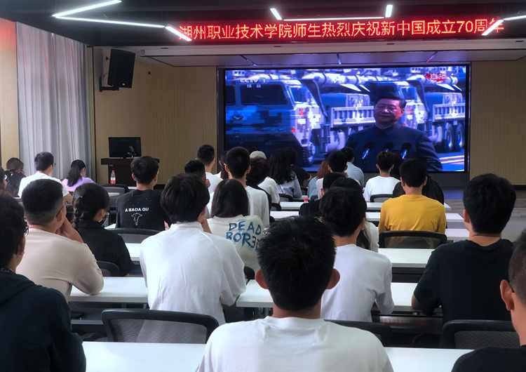 10月1日上午,庆祝中华人民共和国成立70周年大会在北京天安门广场隆重举行。我校组织师生在教室、实训室、报告厅等校内直播点集体观看庆祝中华人民共和国成立70周年大会和国庆阅兵式,其他师生也通过电视和网络直播、手机客户端等多种方式在家、在宿舍或在其他地方收听收看大会实况,共同见证这一历史性时刻,共同见证伟大祖国的繁荣与富强。大家纷纷表示,习近平总书记的重要讲话和气势磅礴的阅兵式,让我们深感作为一名中国人的自豪与骄傲,为新中国成立70年来的沧桑巨变感到骄傲,对未来发展充满信心和干劲。
