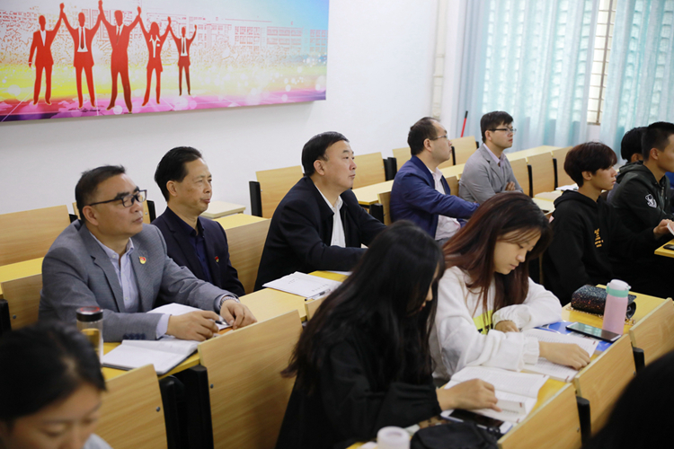 讲课结束后,省委指导组黄根来与思政部负责人以及周静老师进行了亲切的交谈,了解了授课教师的情况和大学生的思政课学习情况,肯定了教学内容的组织和课堂气氛,还就授课内容、教学方法等进行了交流。(文/张合营 摄/郑强)