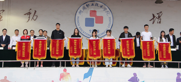 闭幕式上,主席台领导为获得学生团体奖、体育道德风尚奖、优秀组织奖、教职工集体运动项目团体奖的代表队和获得破纪录奖的运动员颁奖。