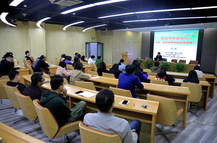 11月1日下午,南京大学博士生导师、“全民阅读十佳推广人”之一、中国图书馆学会阅读推广委员会副主任徐雁教授在教师发展中心二楼报告厅作《最是书香能致远——文学、艺术佳作的校园阅读推广》专题讲座。来自各学院的师生聆听了讲座。