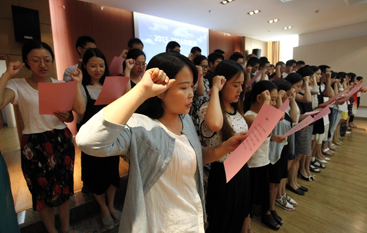 为了进一步尊重劳动、尊重知识、尊重人才、尊重创造、依靠教师、服务教师,营造良好的教育生态环境,增强广大教师的归属感、幸福感和自豪感,学校出台了《“三育人”先进个人评选办法》《“名师”培养与管理办法》等制度文件,为师资建设,特别是青年教师成长营造更加优越的环境、搭建更为广阔的平台;先后开展了“师德先进个人”、第一批校级“名师”、“十佳青年教师”、“三育人”先进个人等先进评选表彰活动,在全校范围内营造了浓厚的尊师重教良好风尚。