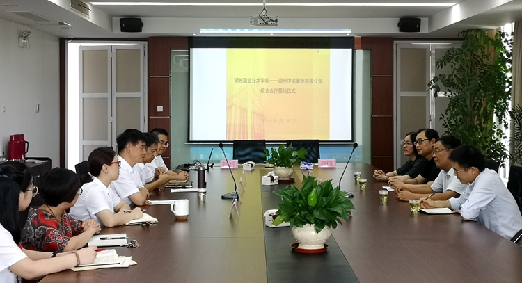 2018年,湖州职业技术学院产教融合发展联盟成立,下设建筑、新能源汽车、智能制造、智能电梯、物流与信息、商务贸易、旅游、文化创意和农业农村等9个专业(群)产教融合联盟,积极与重点企业、行业、部门互动,细分产业开展专业合作,举办专题交流研讨会、人才双向交流等活动,强力推进产教融合协同育人。通过开展现代学徒制试点、“校中厂、厂中校”、混合所有制学院试点等,优化人才培养模式,深化校企协同育人,多途径推进技术技能型人才培养,开创了高等职业教育与产业协调发展的湖州新模式。