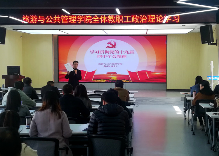 艺术设计学院召开理论中心组扩大会议、全体学生干部专题学习会、“青年.夜读一刻钟”集中交流会,建筑工程学院、物流与信息工程学院、旅游与公共管理学院、继续教育学院召开全体教职工政治理论学习会,思政理论教研部组织专题学习会,把学习贯彻落实党的十九届四中全会精神和主题教育紧密结合,把提升治理能力与推动学校改革发展紧密结合。