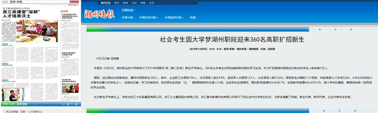 【湖州晚报】社会考生圆大学梦湖州职院迎来360名高职扩招新生