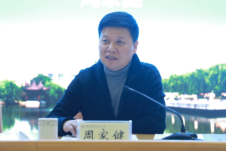 周家健强调,学校二次党代会明确提出“高质量建成区域性高职名校、办人民满意的高职教育”的目标愿景,作出了“一个目标、‘三步走’、六大战略、六个着力、五个起来”的“一三六六五”决策部署。要把学习贯彻党的十九届四中全会精神与落实学校二次党代会决策部署结合起来,加快推动学校治理体系和治理能力现代化。实现学校治理现代化必须坚持科学治理、系统治理、依法治理,重点处理好几对关系。一是要处理好学生、教师、学校的关系。要促进每一个学生发展,要始终牢牢抓住教学中心,深化教育教学改革、提高人才培养质量这个主线,要让尊师重教在校园蔚然成风。二是要处理好改革、发展、稳定的关系。要抓基础、抓常规、补短板、强特色,查找学校发展中存在的体制机制障碍和短板,从现实出发,不断以改革促发展、促提高。三是要处理好党的领导、依法治理、民主参与的关系。党的全面领导、党委领导下的校长负责制是实现学校治理现代化的根本保证;依法治理是学校治理现代化的基本要求;民主参与是高校治理文明和治理现代化的重要标志。