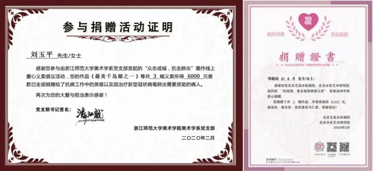 学院钱慧溟、刘玉平等多位教师的作品正自发进行义卖。其中刘玉平老师的作品义卖金额已经过万,这些义卖款项将全部捐献用于疫情防控。