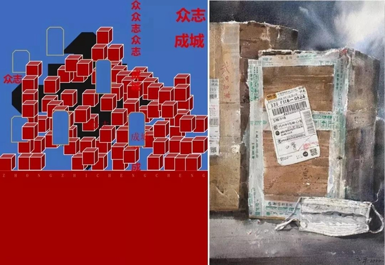 钱慧溟《众志成城》 刘玉平《吉祥物流》