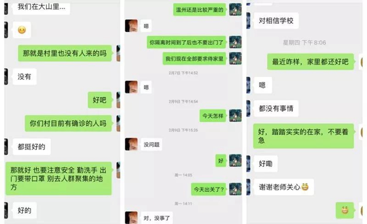针对居家隔离观察的师生,学院采取一对一地关心帮扶,及时联系慰问,对在疫情期间身体不适的学生给予重点关注,开展心理疏导。通过师生每日线上“报平安”、电话、短信、QQ群、微信等交流方式。截止目前,学院有武汉、湖北返乡人员接触史的学生皆已安全渡过观察期。