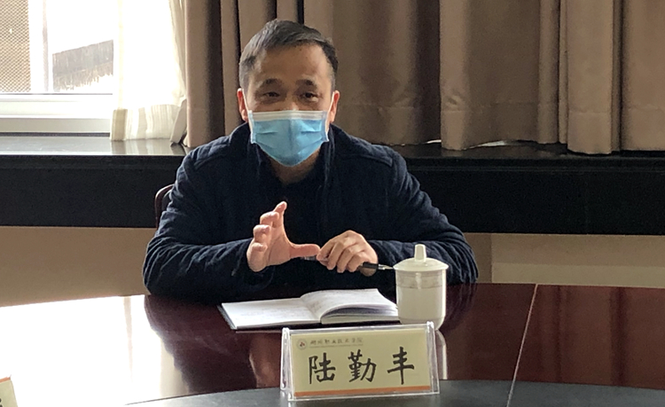 陆勤丰汇报了学校近期开展的疫情防控工作,重点介绍了目前线上教学、毕业生顶岗实习支持企业复工复产以及教职工返湖等落实情况。