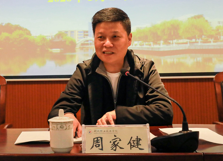 周家健指出,2020年是全面建成小康社会的决胜之年,也是学校收官“十三五”、谋划“十四五”、创建省级“双高”学校的攻坚之年。2020年学校工作主题是“双高建设攻坚年”。要按照 “两手抓”“两战赢”要求,一手抓疫情防控,一手抓教育教学,着力抓好六个方面的重点工作。一是全面提升人才培养质量。要进一步加强和改进思想政治工作,着力推进建设“双高”,切实做好省级课堂教学创新校示范建设,进一步提升实训基地建设水平,切实提高生源和创就业质量。二是全力打造高水平“双师”队伍。健全师德师风建设长效机制,大力引进高层次人才,提升“双师”队伍能力水平,完成第三轮岗位聘任工作。三是创新科技与服务地方工作。提升科技创新能力水平,深化继续教育改革。四是高水平推进校本治理现代化。完成校本治理的顶层设计、深化“最多跑一次”改革、做好统战与群团工作。五是建设现代化文明校园。进一步强化文化育人实效,持续做好服务师生的民生实事,切实维护校园安全稳定。六是彰显党建“五个起来”引领保障。持续推进基层组织强起来,持续推进党务干部硬起来,持续推进党风廉政严起来,持续推进党建研究热起来,持续推进党建工作实起来。