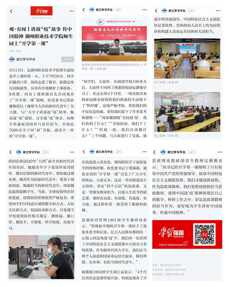 【学习强国】观・有闻|讲战“疫”故事 传中国精神 湖州职业技术学院师生同上“开学第一课”
