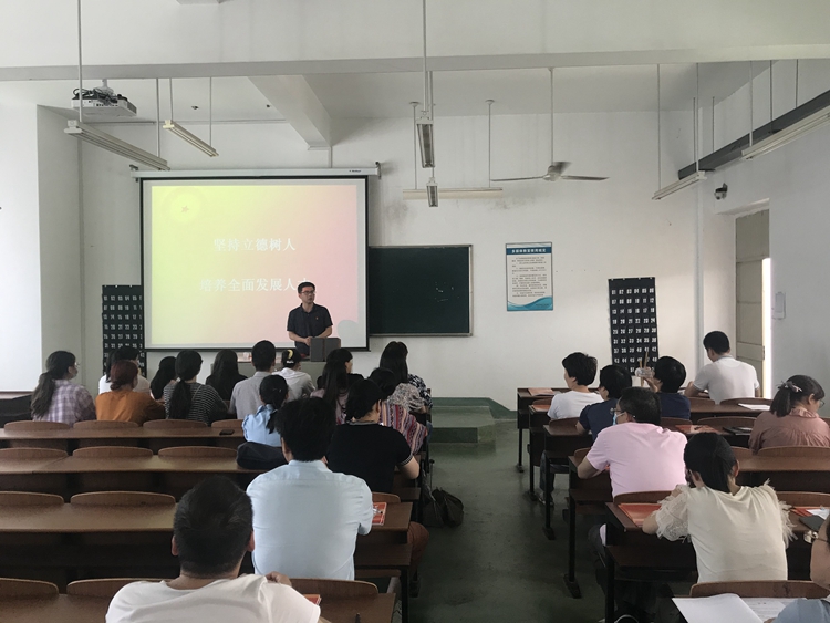物流与信息工程学院党总支负责人为全体党员上了一堂主题为《坚持立德树人根本任务,培养德智体美劳全面发展人才》的党课,带领全体教师党员面向党旗庄严宣誓,重温了入党誓词,要求党员同志始终牢记党员身份,时刻保持党员形象和素质,以实际行动践行全心全意为人民服务的根本宗旨。