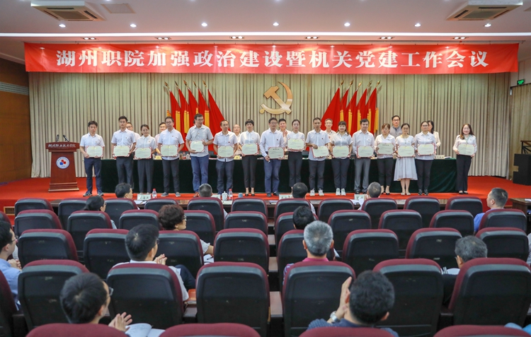 会上,党委副书记、校长沈建民宣读了《中共湖州市委关于表彰湖州市优秀共产党员的决定》、《关于公布第一批市级行业系统“双创双全”组织力提升工程示范支部、特色品牌名单的通知》、《关于表彰学校优秀共产党员、优秀党务工作者、先进基层党组织的决定》等表彰文件。主席台领导为“两优一先”获得者颁奖。